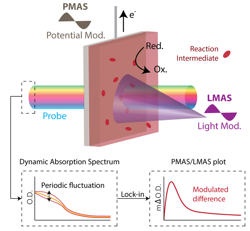 论文标题:Dynamic Probing of Intermediates in (Photo)electrocatalytic Reactions Using Frequency-Resolved Excitation Modulated Absorption Spectroscopy