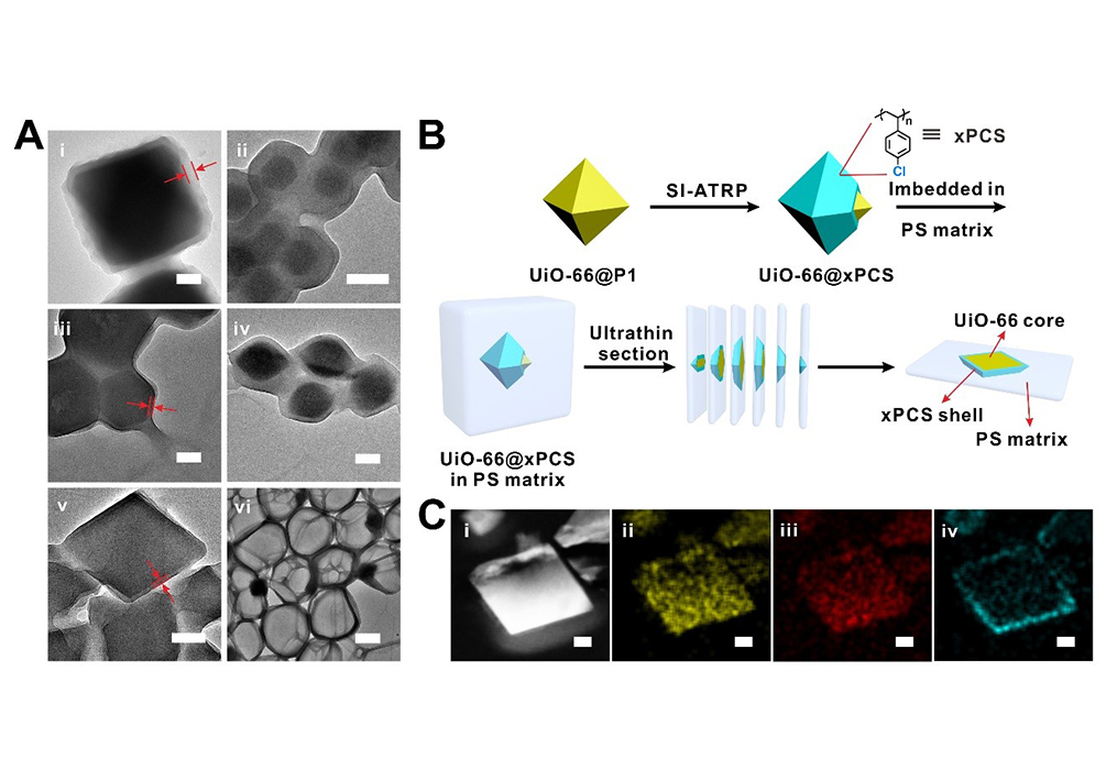 To overcome current challenges, Li Tao's research group developed a surface-initiated atom transfer radical polymerization (SI-ATRP) method for the growth of polymers on various MOFs materials’ surface, which is based on the self-assembly of a designed random copolymer (RCP) on the surface via weak interaction. In this research, they first designed an RCP containing multiple carboxylic acid groups and initiation sites (bromoisobutyrate, BiB) of ATRP along the polymer chain. Then this RCP was self-assembled onto MOF surfaces through inter-chain hydrogen bond crosslinking accompanied by weak MOF/polymer interactions to immobilize the initiation site on MOF surface. The SI-ATRP was performed subsequently in the presence of monomer and crosslinking monomer, and a layer of covalently crosslinked polymer with uniform thickness can be coated on the surface of MOF. Utilizing the reversible-deactivation feature of ATRP, a second and even a third layer of polymer (linear or crosslinked) can be subsequently grown from the first layer, thus the composition, sequence and architecture of polymer layer on the surface of MOFs can be controlled arbitrarily. This method solves the long-standing problem of MOFs surface modification with polymers and makes the accurate synthesis and interface regulation of MOF and polymer composites possible.