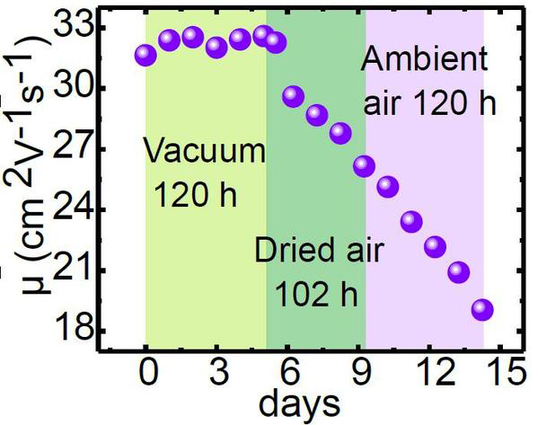 Nb2SiTe4 exhibits excellent mid-infrared detection capability due to its suitable bandgap size. The responses to electromagnetic waves at 532 nm and 3.1 μm are shown in Figure 2. More importantly, Nb2SiTe4 FET devices also show better stability than other narrow-gap 2D materials. As Figure 3 shows, after 10 days of exposure to the atmosphere, the carrier mobility decreased by only about 40%. Previously discovered narrow-bandgap 2D materials lose their electrical properties completely when stored in air for several hours.
