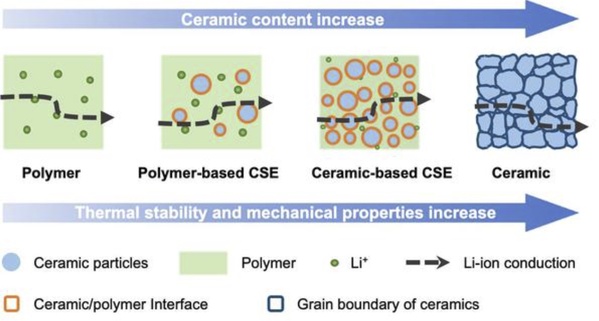 Composite solid electrolytes are generally composed of polymers, inorganic ceramics and lithium salts, which combine the advantages of polymer electrolytes and inorganic ceramic electrolytes and have better properties. Currently, the most studied polymer-based composite solid electrolytes are easily ignited and can be penetrated by lithium dendrites, leading to potential safety problems. Liu Wei's group demonstrated that ceramic-based composite solid electrolytes exhibit better thermal stability and mechanical properties than polymer-based composite solid electrolytes.