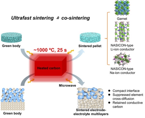 Among the potential solid electrolytes, oxide ceramic electrolytes are the more promising, because they have high ionic conductivity, a wide electrochemical window and high chemical stability. However, conventional methods in sintering oxide ceramic electrolytes often require high temperatures (>1100 °C) and long processing times (>10 h), factors which often lead to the generation of impurities and the inability to achieve stable and sufficient interfacial contact between the solid electrolytes and the electrodes.